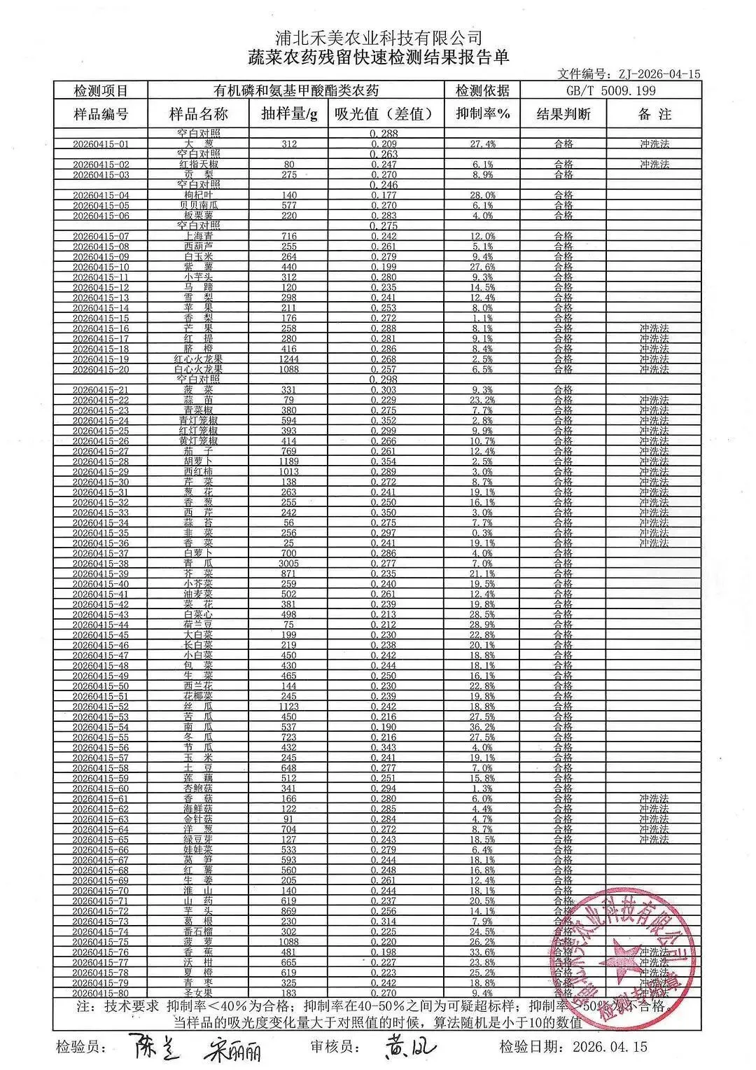 >金浦供应链&禾美农业-04月16日蛋类、酱腌菜、肉类、蔬菜、水豆腐、鲜湿淀粉条检测 报告